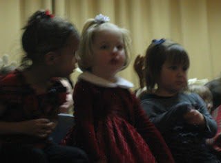 Violet was in a program at her preschool. They sang songs and then did a nativity scene.She chewed her sleeve the whole time.